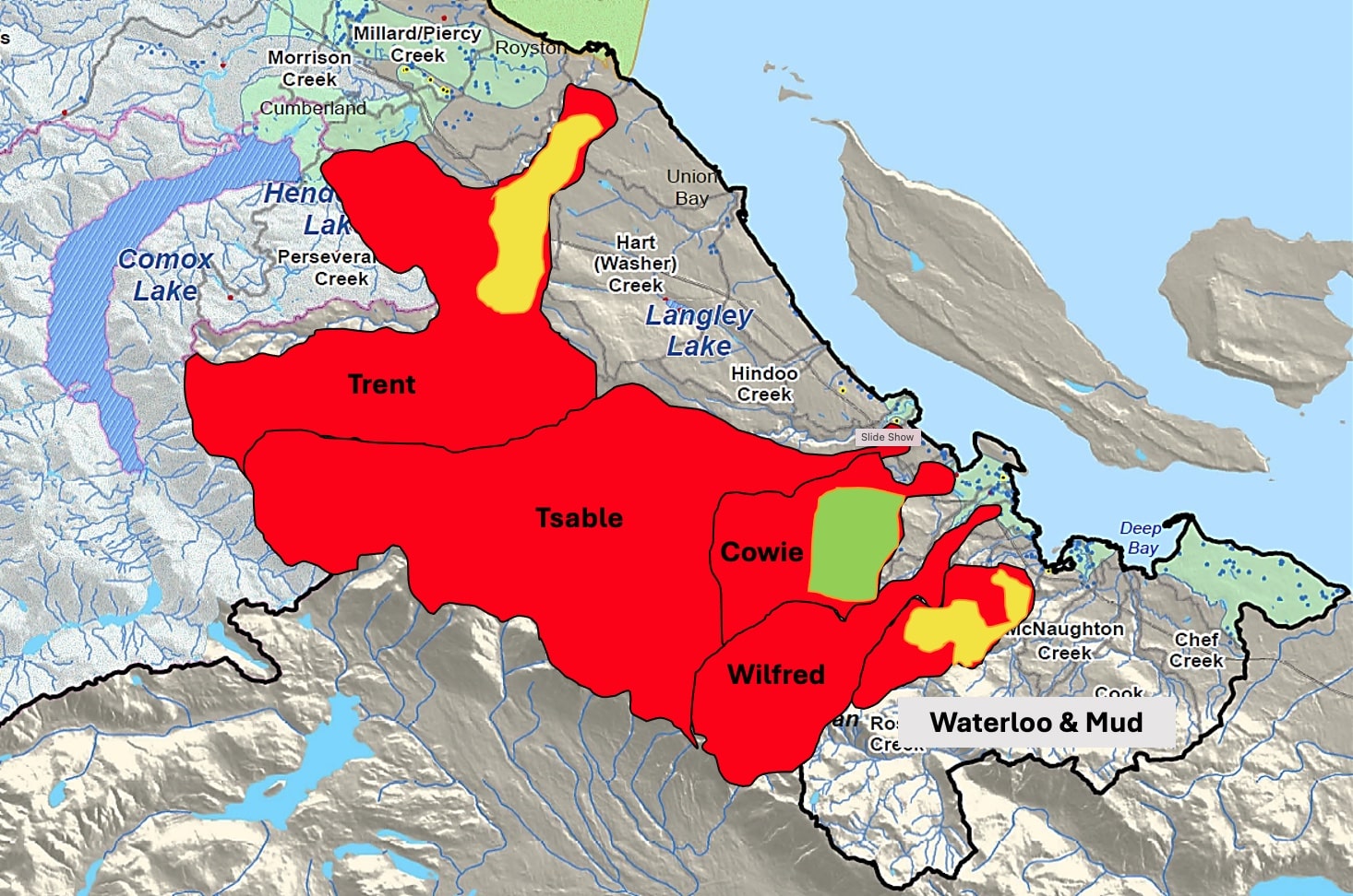 This article summarizes the findings of three assessments conducted on the unceded traditional territory of the K’ómoks, Pentlatch and Qualicum First Nations along the eastern slopes of the Beaufort Mountain Range. The assessments & compilation of the reports were conducted by Dave Weaver, retired forest worker; the preparation of the Trent River Watershed Report was supervised by Dave Daust, RPF & Scott Scholefield, RPF.